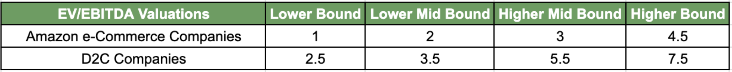Amazon bleibt die dominierende Plattform im E-Commerce. Die Bewertungen für Amazon-zentrierte Marken blieben im Vergleich zum Vorjahr stabil und bewegen sich in der Regel in einem Bereich von 1,0x bis 4,5x EV/EBITDA. Gut positionierte Marken mit soliden Fundamentaldaten werden am häufigsten zwischen 2,0x und 3,0x bewertet.